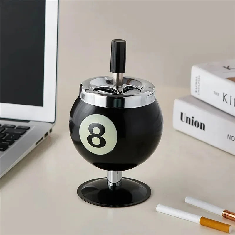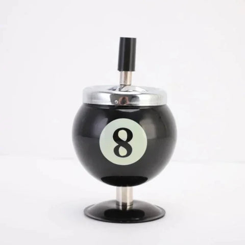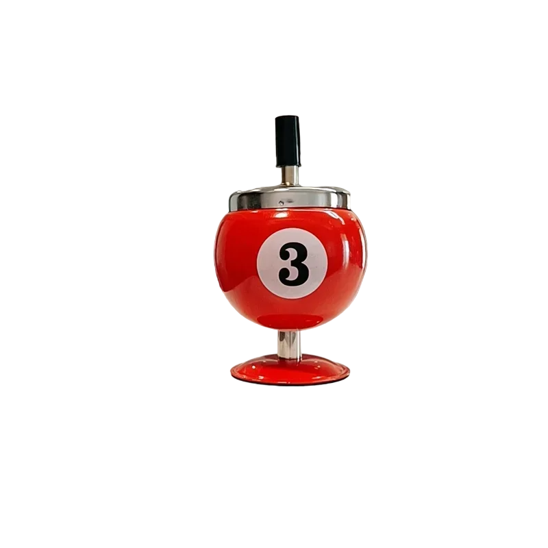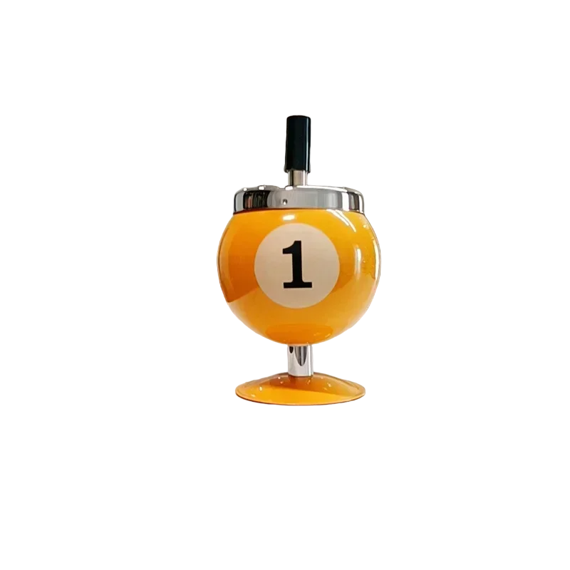 Un cendrier poussoir unique en forme de boule de billard